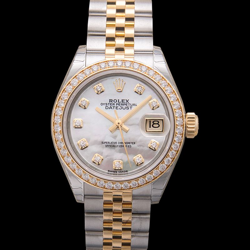Lady Datejust Automatic White mother-of-pearl set with diamonds Dial Stainless Steel and Yellow Gold Ladies Watch